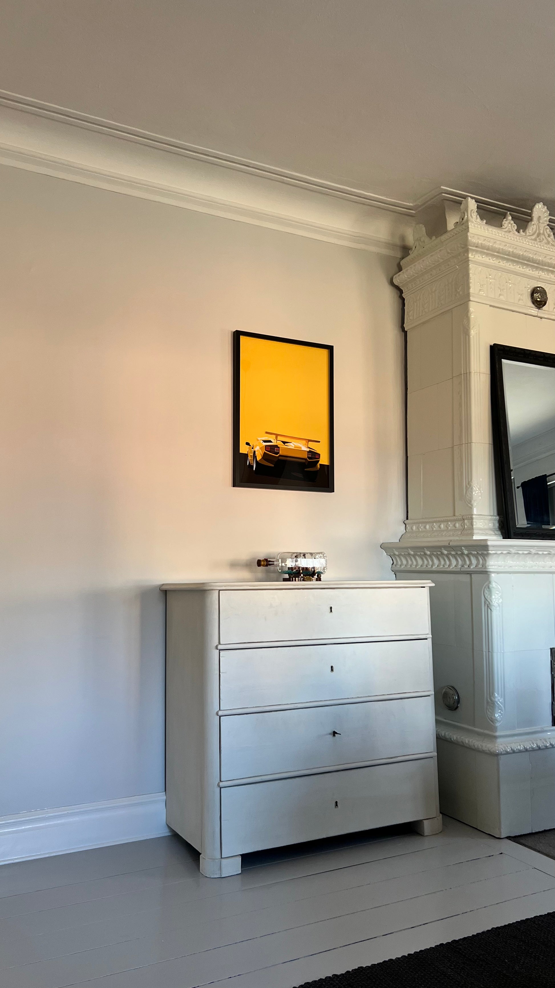 Denna livfulla gula poster har ett stiliserat tryck av en legendarisk italiensk superbil, känd för sin kantiga design och otroliga prestanda. Med skarpa linjer och en djärv framtoning är den en hyllning till ett av de mest ikoniska fordonen i bilhistorien. Perfekt för alla som beundrar lyx, fart och banbrytande design. Lägg till en touch av högpresterande stil till ditt utrymme med denna enastående poster. 🏎️💥